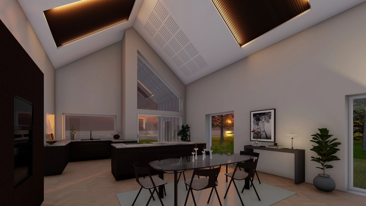 Arkitektritat enplanshus med fantastiska detaljer och noggrant utvalda materialval som skapar en unik karaktär och tidlös elegans. Varje del av huset är utformat med fokus på funktion, hållbarhet och estetik, vilket gör det till ett hem som både inspirerar och imponerar. De öppna ytorna, den genomtänkta planlösningen och samspelet mellan ljus och rymd bidrar till en modern och harmonisk livsmiljö. Projektet har fått stor uppmärksamhet och har till och med funnits med bland urvalen till det välkända TV-programmet Grand Designs Sverige, vilket understryker dess unika kvaliteter och visionära arkitektur.